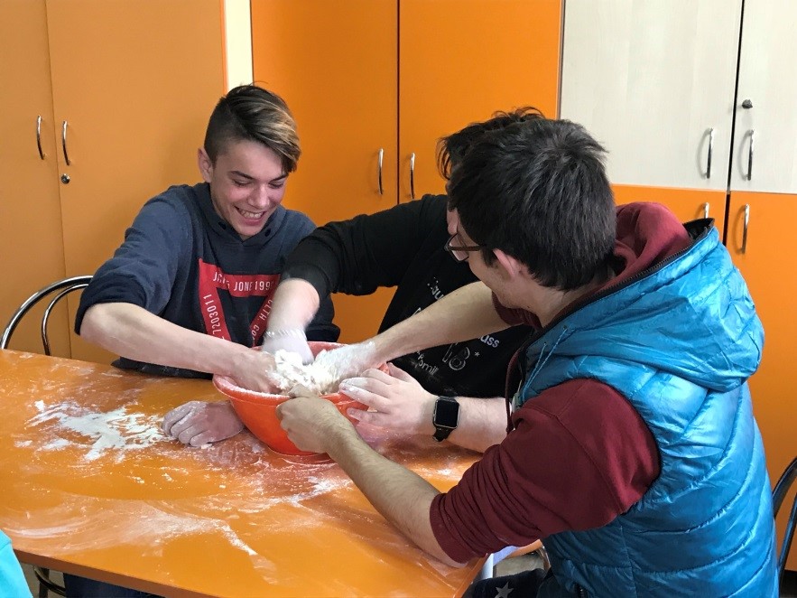 The Bread-Therapy Workshop consists of a series of activities centred on the making of bread, done by a group of individuals with special needs. The aim of this method is to enhance communication, creative and teambuilding skills of people with special needs. The pupils make bread, in small teams, collaborate, share ideas, and work on the task in an amusing way for everyone.
