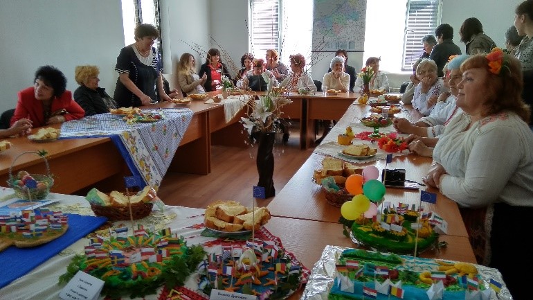 56 elderly people from Ruse and Silistra regions took part in a national baking competition. The winners with 37 bread products (9 from Slivo Pole Municipality; 11 from Ruse Municipality; 12 from Ivanovo Municipality; 3 from Vetovo Municipality; 1 from Silistra region) took part in IC-BC. 11 of them were winners. The titles were: The sun happily shines all over Europe; Danube – the river of friendship in the united Europe; United Europe – family tree; European flag; As numerous as bread crumbs; Chickens as a symbol of life; European basket; Christmas bread; Euro-puzzle; European round loaf; Easter in one European home.
